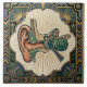 Experience the intricate beauty of the human auditory system with this stunning Art Deco-inspired ceramic tile. Featuring a detailed illustration of the ear's internal structure, rendered in a sophisticated palette of warm browns, vibrant greens, and striking blues, this tile is a unique piece of functional art. The geometric borders and radiating sunbursts characteristic of the Art Deco era add a touch of vintage elegance, making it a perfect accent for any space. Ideal for audiologists, medical enthusiasts, or anyone who appreciates the fusion of science and style, this tile brings a sense of wonder to your walls. Elevate your decor with this captivating representation of sound and science.