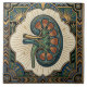 This stunning ceramic tile features a beautifully rendered anatomical illustration of a kidney, presented in a vibrant blue and green palette with striking gold accents. The intricate Art Deco border, adorned with floral motifs and sunburst patterns, adds a touch of vintage elegance and sophistication to the design. This unique piece is perfect for anyone with an interest in anatomy, medicine, or simply appreciating artistic representations of the human body. It would make a distinctive addition to any home decor, adding a pop of color and a conversation starter to kitchens, bathrooms, or living spaces. Embrace the fusion of science and art with this eye-catching tile.