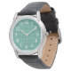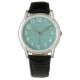 Diese Herren-Uhr hat ein Art-Déco-Design aus einem rechten Winkel mit einem Labyrinth-Set innen in aquamarin auf einem Feld von Meeresgrün.