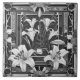 Jugendstil-Antiquitäten,verzierte Vintage Blume,Keramik Fliesenkunst,stylische schwingende lillilare Lilien,hübsche klassische ,dunkelgrau Holzkohle,graue, weiße Blume,dekorative klassische Blüte,Lilienkartoffeln, botanische Schwarz-Weiß-Dekos