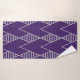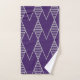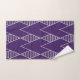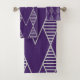 Dieses Handtuch-Set hat eine Art Deko-Design von Diamanten, einige mit horizontalen Linien, in Silber auf einem Feld von blau.