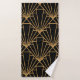 Dieses Handtuch-Set hat ein Art-Déco-Design von Diamanten und Dreiecken in Gold auf einem schwarzen Feld.