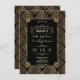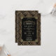 Glamouröses Art Deco Great Gatsby Stil Design. Es ist im Art-Déco-Stil gehalten, Imitate mit goldfarbener Folie und Ziergegenständen auf schwarzem Hintergrund. Verwenden Sie das Tool Anpassen, um Ihre Informationen hinzuzufügen. Für passende Artikel besuchen Sie bitte meine Art Deco Black/White Gatsby Style Collection aus den 20er Jahren.