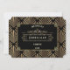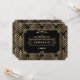Glamouröses Art Deco Great Gatsby Stil Design. Es ist im Art-Déco-Stil gehalten, Imitate mit goldfarbener Folie und Ziergegenständen auf schwarzem Hintergrund. Verwenden Sie das Tool Anpassen, um Ihre Informationen hinzuzufügen. Für passende Artikel besuchen Sie bitte meine Art Deco Black/White Gatsby Style Collection aus den 20er Jahren.