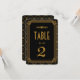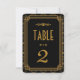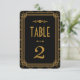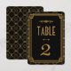Diese Tischnummern sind mit einer schwarz-goldenen Farbpalette, einem geometrischen Rahmen, geometrischen Mustern und anderen stilistischen Details inspiriert, die alle durch Art Deco und die rauschenden Zwanziger Jahre. Sie können die Textfelder des Beispiels nach Ihren Wünschen anpassen.