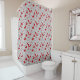 Der Duschvorhang im Art-Déco-Muster basiert auf einem traditionellen, stilisierten Chrysanthemum-Muster, das in japanischen Textilien verwendet wird, in cremefarbenem Weiß mit einem reichen, chinesischen, roten Hintergrund