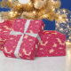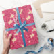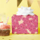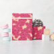 Ein Art-Deco-Muster, das auf einem traditionellen, stilisierten Chrysanthemum-Muster basiert, das in japanischen Textilien verwendet wird, in tiefen Rosa/Fuchsia-Tönen mit einem hellpfirsichfarbenen Hintergrund