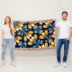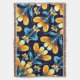 Ein orangefarbenes und blaues Muster mit elegantem Blumendesign