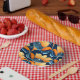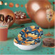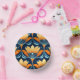 Ein orangefarbenes und blaues Muster mit elegantem Blumendesign