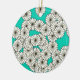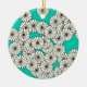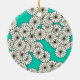 Ein Art-Deco-Muster, das auf einem traditionellen, stilisierten Chrysanthemum-Muster basiert, das in japanischen Textilien verwendet wird, schwarz in Weiß umrissen, mit einem reichen türkisfarbenen/Pfauenhintergrundschmuck