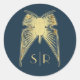 Art Deco Butterfly Monogram Blue Gold Runder Aufkleber