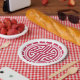 Art-Déco-Stil Kreis in rot. Dieses Design wirkt auf diese Paper-Teller sehr effektiv