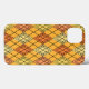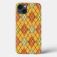 Dieses Handy Gehäuse hat ein Art Deko Design Diamantformen aus überlappenden Winkeln in schwarzen Linien in Orange- und Gelbtönen mit diagonalen schwarzen Linien, die das Design wie Raute aussehen