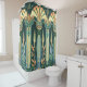 Schöne Duschvorhangkunst mit gewagten Deko-Säulen in Grüntönen.