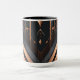 A luxurious Art Deco digital design featuring symmetrical geometric shapes in polished copper and metallic silver against a deep matte black background. Layered diamonds, V-shapes, and diagonal lines create depth and elegance, while subtle reflections enhance the metallic sheen. Perfect for adding a sophisticated, timeless aesthetic to modern interiors, stationery, or fashion-inspired products that celebrate precision and luxury.