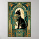 Art Deco Curtain Climbing Cat Wall Art Poster