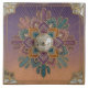 Step into a whimsical desert dreamscape with this Art Deco-inspired ceramic tile. Featuring a vibrant mandala design adorned with playful cacti and a shimmering disco ball, this piece brings a unique blend of retro glamour and desert charm to any space. The intricate patterns and rich jewel tones of purple, teal, and orange, outlined in elegant gold, create a captivating visual experience. Each tile is meticulously crafted to add a touch of artistic flair and a hint of playful energy to your home décor, making it a perfect statement piece.