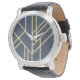 Abstraktes geometrisches Design im Art-Déco-Stil mit goldgelben Linien auf marineblau grunem Hintergrund