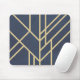 Abstraktes geometrisches Design im Art-Déco-Stil mit goldgelben Linien auf marineblau grunem Hintergrund