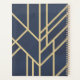 Abstraktes geometrisches Design im Art-Déco-Stil mit goldgelben Linien auf marineblau grunem Hintergrund