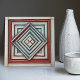 Die geometrische Eleganz der "Art Deco Diamond Depth Keramik Print Tile" vereint klassisches Design mit zeitgenössischem Kunsthandwerk. Dieser faszinierende Druck zeichnet sich durch ein mehrschichtiges Rautendesign aus, das durch eine Palette von aquamarinen, weichen Cremes und warmen Rosttönen ein faszinierendes Tiefengefühl schafft. Obwohl die Prägung der Original-Kachel auf ein taktiles Erlebnis hindeutet, bietet diese Druckversion eine glatte Oberfläche, die die visuelle Komplexität in einem flachen Format bewahrt. Diese Kachel eignet sich ideal, um eine historische Touch zu einem modernen Ambiente hinzuzufügen. Sie eignet sich ideal für diejenigen, die die Eleganz der Art Déco-Ära bewundern, die in einem praktischen und dekorativen Kunstwerk verkleidet ist.