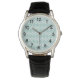 Diese Männeruhr hat ein kunstvolles Deko-Design von überlappenden Diamanten in Verditer (grün) und Blau auf einem Feld von Weiß.