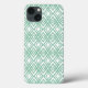Dieses Handy Gehäuse hat eine Art Deko-Design von überlappenden Diamanten in Verditer (grün) auf einem Feld von Weiß.
