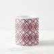 Diese Tasse hat eine Kunst Deko-Design von überlappenden Diamanten in Sangria auf einem Feld von Weiß.