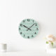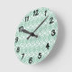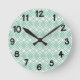 Diese Wanduhr hat einen kunstvollen Deko-Design von überlappenden Diamanten in Verditer (grün) auf einem Feld von Weiß.