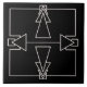 Ein Deko, der eine Kachel mit einem Doppelpfeil in Silber inspiriert hat, mit schwarzem Hintergrund