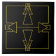 Ein Deko mit inspirierter Kachel mit Doppelpfeil in Gold mit schwarzem Hintergrund