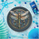 Schönes Art Deco Bild eines Dragonfly mit detaillierten eleganten Gossamer Effekt Flügel, gegen eine schöne, aufwändig detaillierte Art Deco Fliesen. Hübsche Blautöne, Grün, Türkis und Gold.