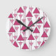 Diese Uhr hat einen Deko-Design von Dreiecken, die in zwei Rosatönen angeordnet sind.