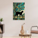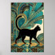This regal art deco design presents a black cat seated on an ornate throne, inspired by Egyptian motifs and framed with glowing gold arches and teal geometric details. The warm halo lighting and intricate patterns evoke the glamour of the 1920s with a mythic twist. Perfect for cat lovers, occult‑style decor and art deco themed rooms, it brings a luxurious, mysterious touch to any wall.