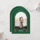 Save the Date im kühlen Art-Déco-Stil, mit einem vergoldeten geometrischen Motiv-Set aus Bronze vor einer tiefen smaragdgrünen Umgebung. Das einzigartige bogenförmige Layout hebt Ihr Foto in der Mitte hervor und schafft eine dramatische und personalisierte Darstellung. Dieses Design verbindet Vintagen Glamour mit moderner Eleganz und verbindet inspirierten Luxus der 20er Jahre mit einer eleganten, zeitgenössischen Ästhetik. Ideal für Paare, die zu zeitloser Eleganz gezeichnet sind, macht dieses Foto Save the Date einen beeindruckenden ersten Eindruck. Keywords: Art Deco, vergoldete Bronze, Smaragdgrün, Vintage Glam, Foto Save the Date, Bogenschnitt, elegant, modern.