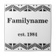 Art Deco FamiliennameTile - Blau auf Weiß mit geometrischer Grenze