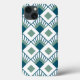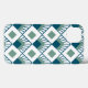 Dieses Handy Gehäuse hat eine Art Deko-Design von aquamarinen Diamanten mit diagonalen Linien und Meeresblau Diamanten auf einem Feld von weiß.