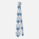 Diese Krawatte hat einen Deko-Design von staubigen blauen Diamanten mit diagonalen Linien und dunkelblauen Diamanten auf einem Feld von Weiß.