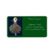 This return address label for Christmas has a pretty reproduction of a vintage Christmas card that has been edited to clean the image up. Add your own holiday greeting and edit the name and address to personalize it. It features a design of an art deco style woman with a Christmas tree skirt.