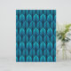 Papier in einem Vintagen Art-Deco-Tapeten-Muster, basierend auf einer stilisierten Feder in Cerulean- und Pfauenblau auf dunkelmarinebasischem/indigoblauem Hintergrund