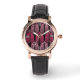 Art Deco Feather Pattern, Fuchsia Pink und Black Armbanduhr