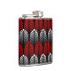 Art Deco Feather Pattern, Silver Grau und Rot Flachmann