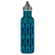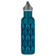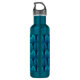 Wasserflasche in einem Vintagen Art-Deco-Tapete-Muster, basierend auf einer stilisierten Feder - türkisfarbene/pfauenblaue Farbtöne auf dunkelmariner/indigoblauem Hintergrund