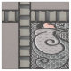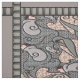 Der Stil, den wir jetzt "Art Deco" nennen, begann in Frankreich, verbreitete sich aber bald auf andere modebewusste Länder, einschließlich Finnland! Das große Set in der Form eines Gitters mit grauem Streifen enthält skurrile finnische Schriftzeichen, die in jede Richtung drängen, luxuriös gekleidet, überzogen in einer Mischung aus Art-Déco-Stilmustern in Grautönen, gedämpftem Lavendel, Cameo-Rosa, türkisfarben und schwarz.
