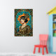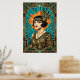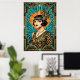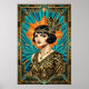 Art Deco Flapper-Frau-Porträt Gold Türkis Poster