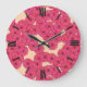Art Deco flower pattern - deep pink and peach Große Wanduhr