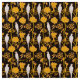 ART DECO GELBEN BLUMEN, WEISSE PARROTEN AUF SCHWAR STOFF