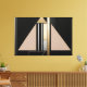 Elevate your space with this sophisticated geometric art. Symmetrical shapes in deep black, metallic gold, and beige create an Art Deco-inspired composition. Precise lines and luxurious contrast bring balance and modernity. Ideal for premium branding, executive offices, and high-end interior decor.