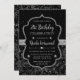 Elegante Schwarz-Silber-Deko-Filigree- und Polka-Punktmuster mit silberfarbenem Vintagem Rahmen und Diamanten