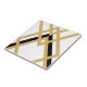 Stilgold im Stil knackiger Dekos und geometrisch schwarze Details verzieren dekorative Keramik mit weißem Hintergrund. Bitte beachten Sie, dass Gold ein senfgelber Flachdruck ist und keine Goldfarbe ist. Das Vintage Interieur im Deko-Stil ist ein durchgängiges, originelles Design, das sich perfekt für die moderne oder künstlerische Gestaltung eignet. Wenn die Fliesen zusammengesetzt werden, passen die Linien zusammen und arbeiten als ein Muster zusammen.